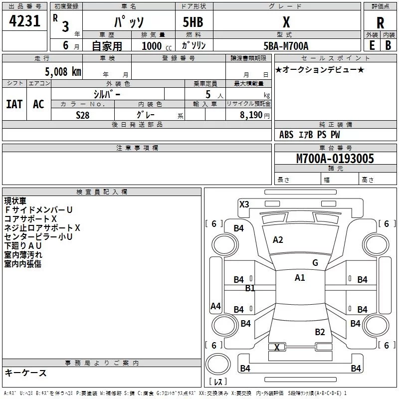Toyota PASSO с аукциона Японии TAA Yokohama лот № 4231