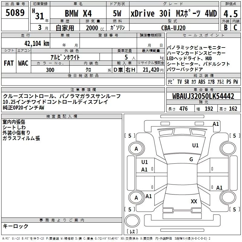 BMW X4 с аукциона Японии TAA Yokohama лот № 5089