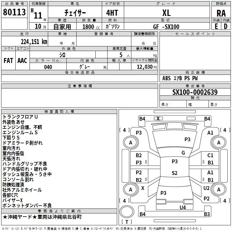 Toyota CHASER с аукциона Японии TAA Yokohama лот № 80113
