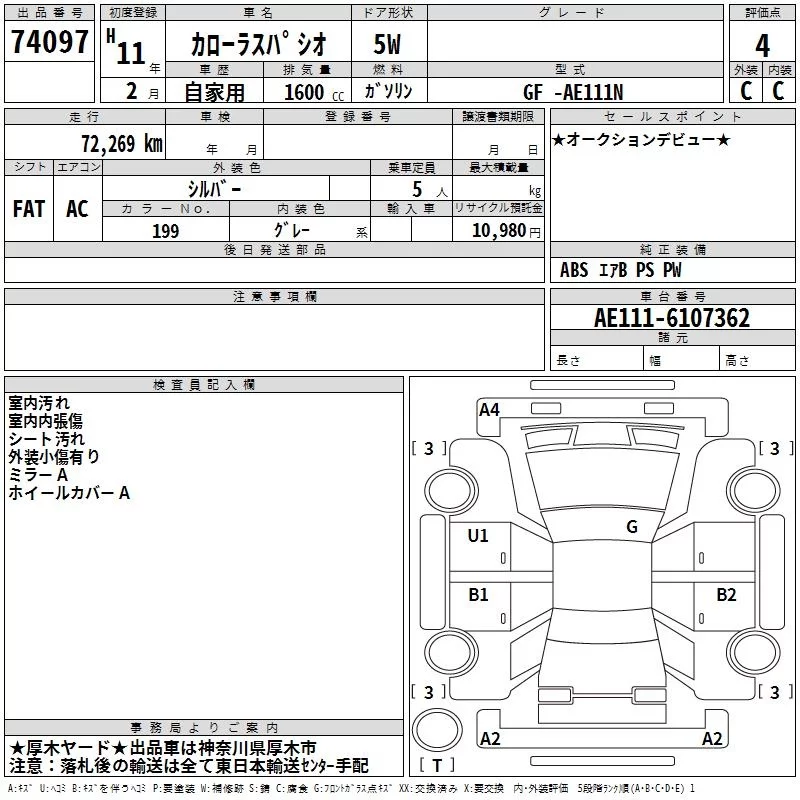 Toyota COROLLA SPACIO с аукциона Японии TAA Yokohama лот № 74097