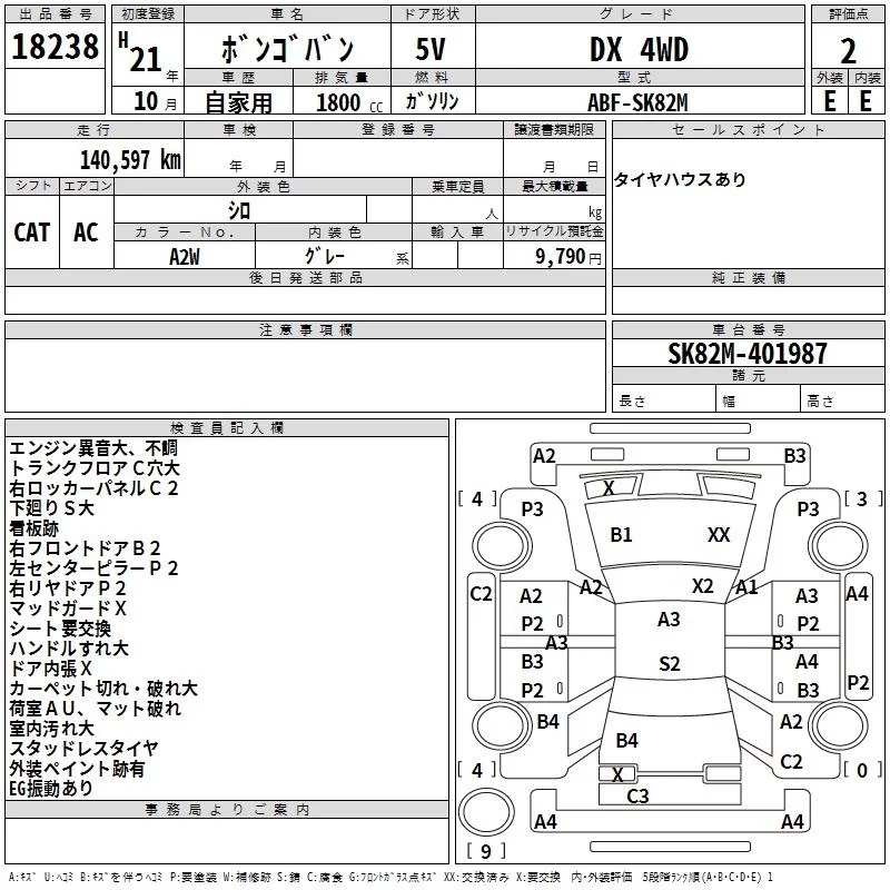 Mazda BONGO VAN с аукциона Японии TAA Yokohama лот № 18238