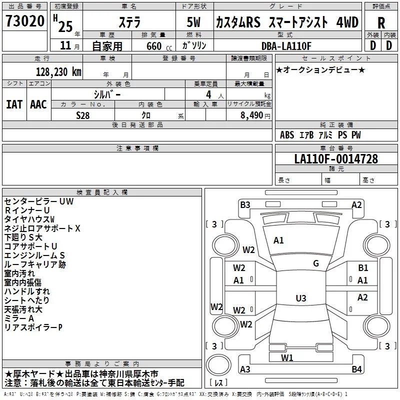 Subaru STELLA с аукциона Японии TAA Yokohama лот № 73020
