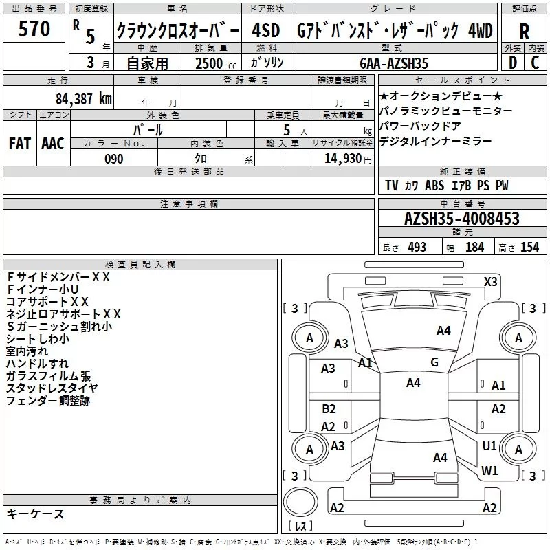 Toyota CROWN CROSSOVER с аукциона Японии TAA Yokohama лот № 570