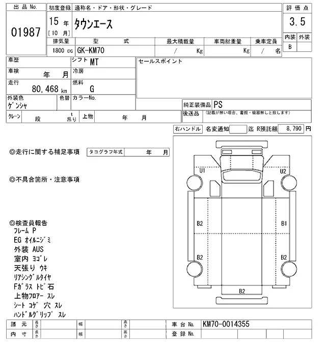 Toyota TOWN ACE TRUCK с аукциона Японии ARAI Oyama VT лот № 1987