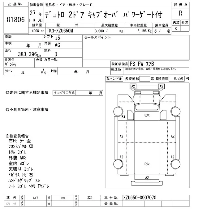 Hino DUTRO с аукциона Японии ARAI Oyama VT лот № 1806