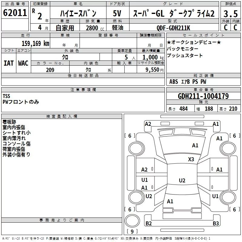 Toyota HIACE VAN с аукциона Японии TAA Hyogo лот № 62011