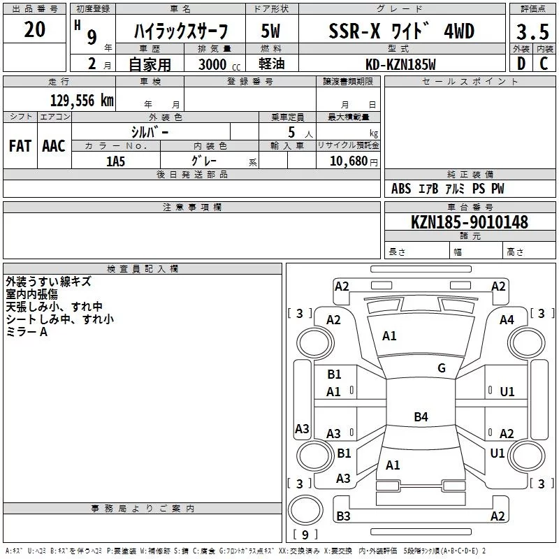Toyota HILUX SURF с аукциона Японии TAA Hyogo лот № 20
