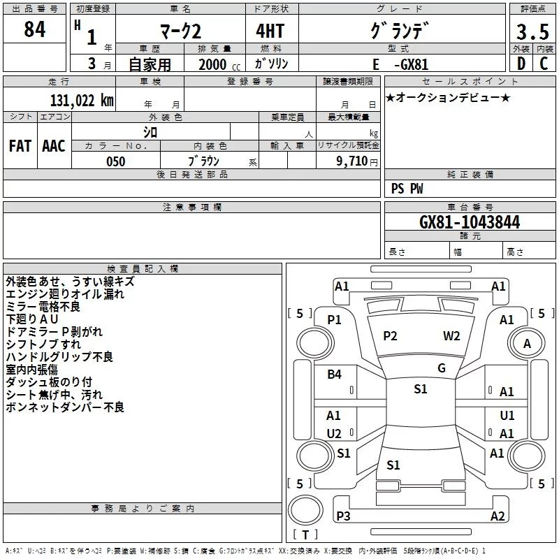 Toyota MARK II с аукциона Японии TAA Hyogo лот № 84