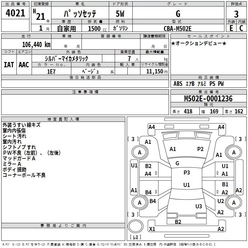 Toyota PASSO SETTE с аукциона Японии TAA Hyogo лот № 4021
