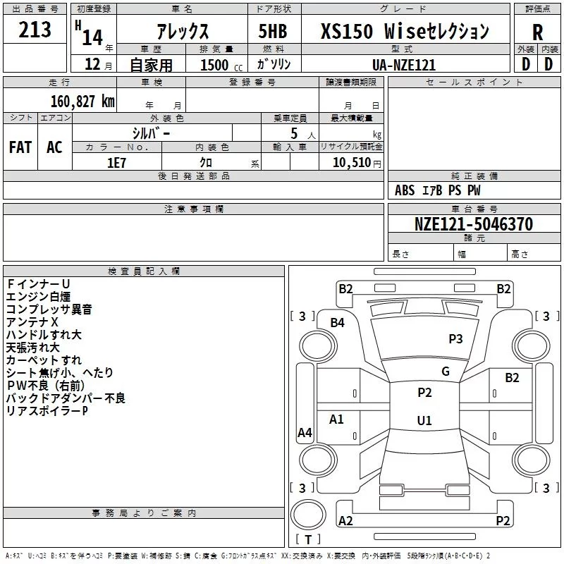 Toyota ALLEX с аукциона Японии TAA Hyogo лот № 213