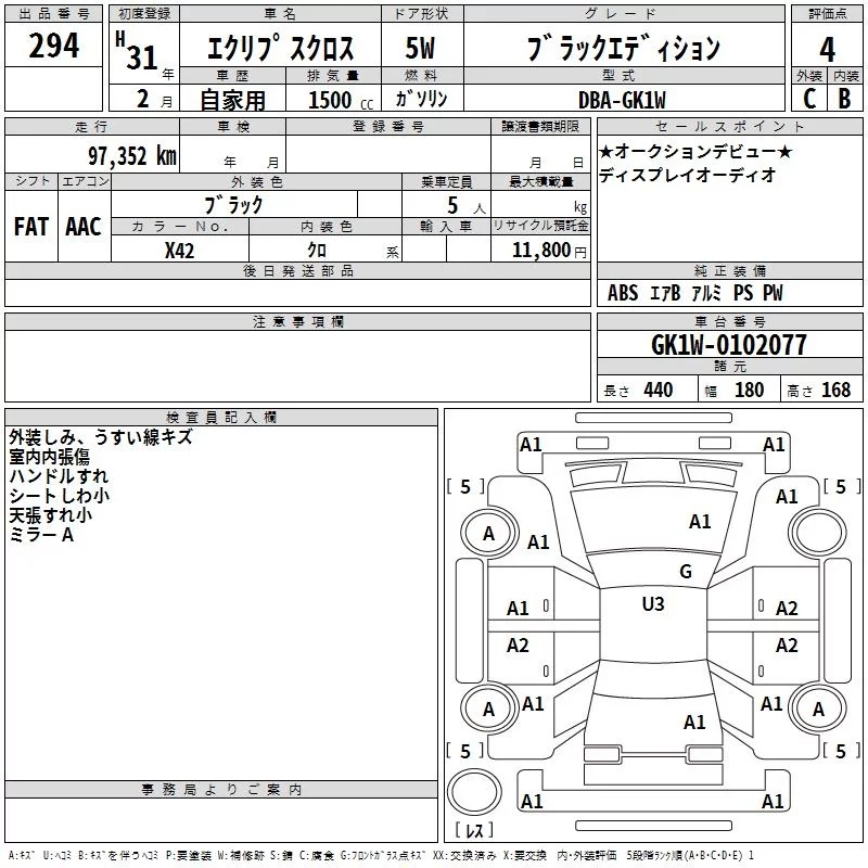 Mitsubishi ECLIPSE CROSS с аукциона Японии TAA Hyogo лот № 294