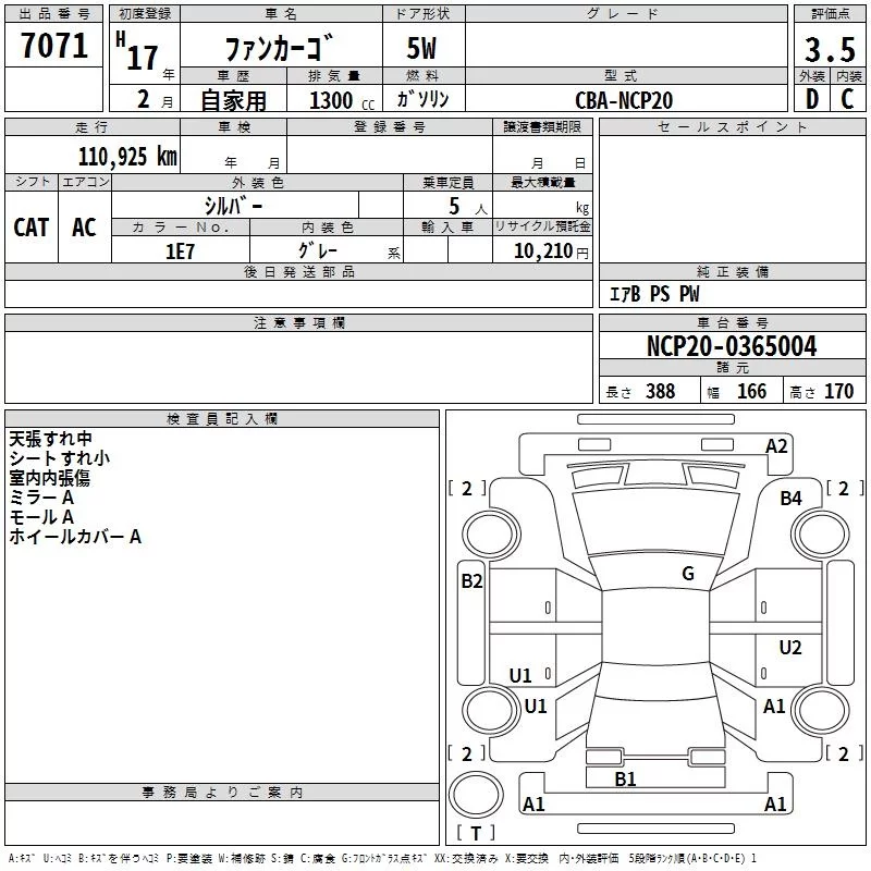 Toyota FUNCARGO с аукциона Японии TAA Hyogo лот № 7071