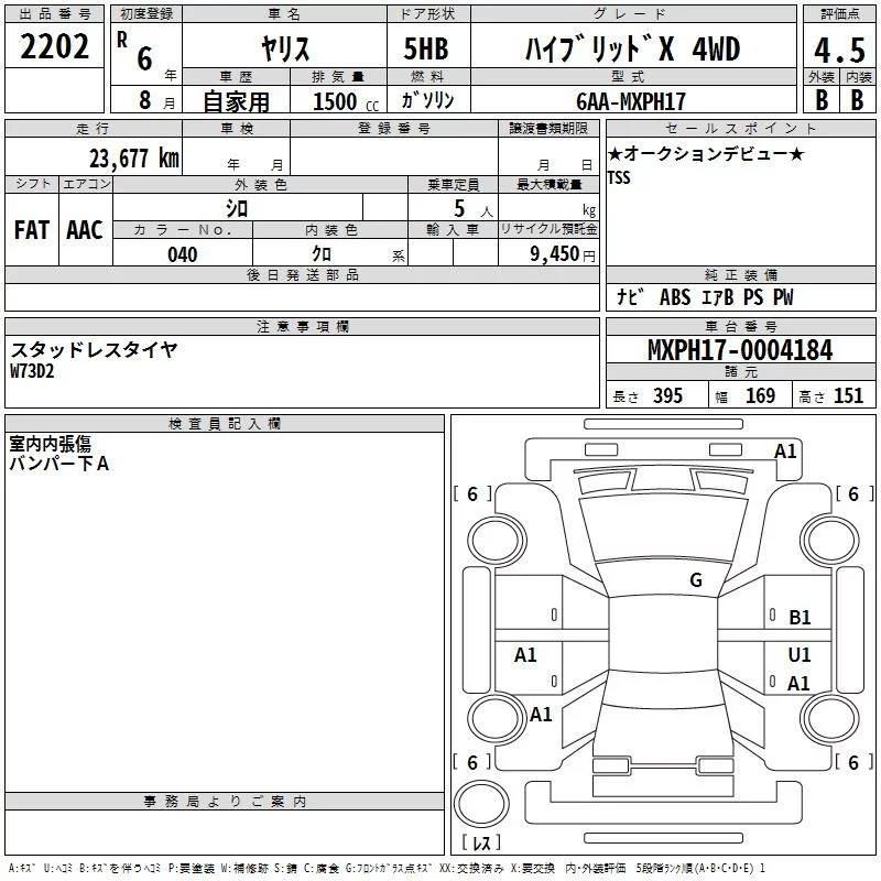 Toyota YARIS с аукциона Японии TAA Hyogo лот № 2202
