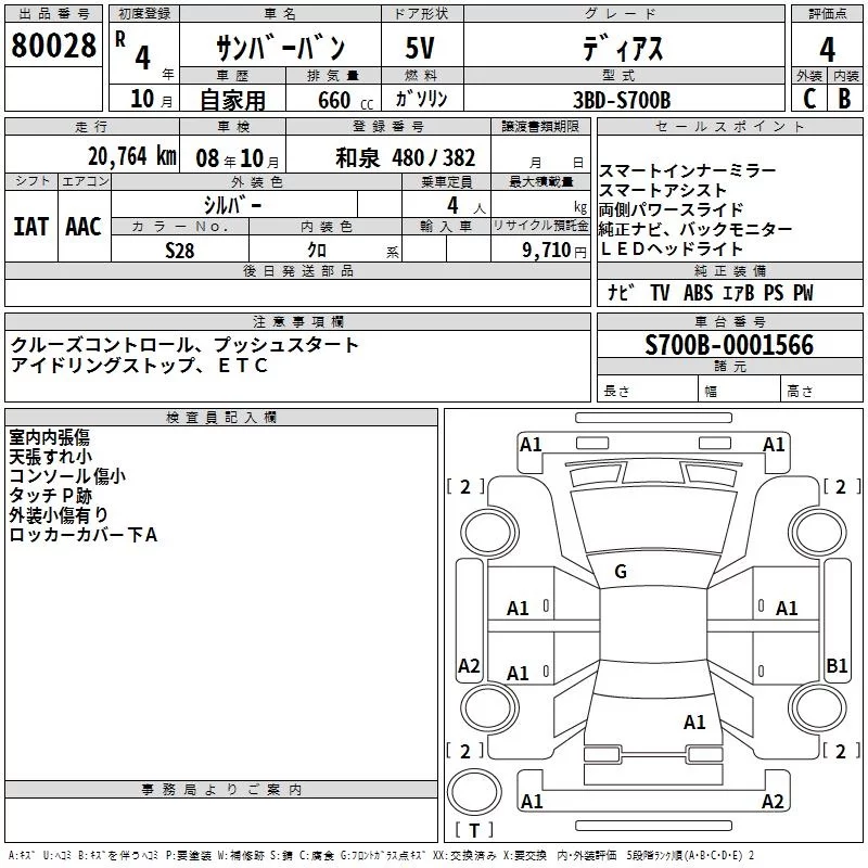 Subaru SAMBAR с аукциона Японии TAA Hyogo лот № 80028