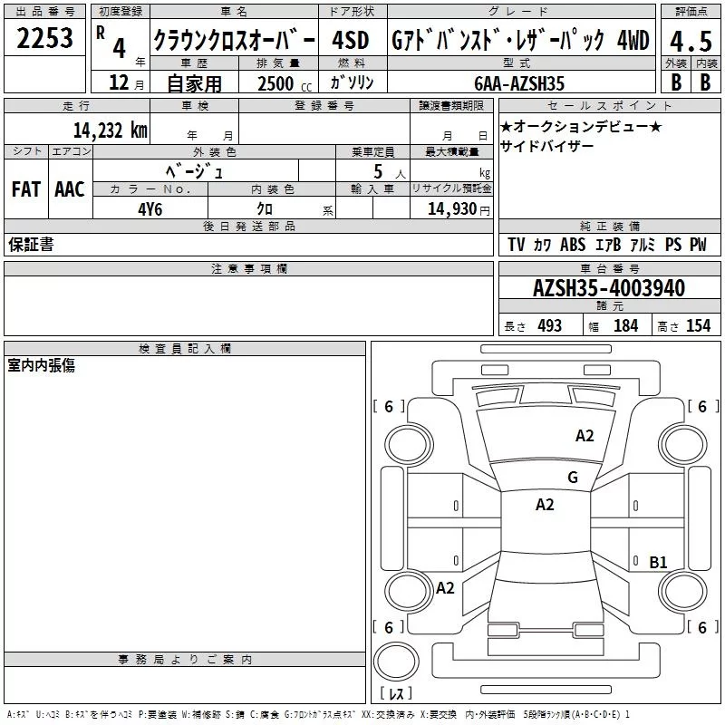 Toyota CROWN CROSSOVER с аукциона Японии TAA Hyogo лот № 2253
