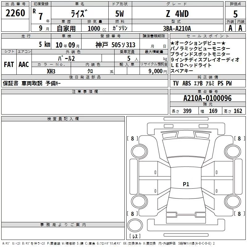 Toyota RAIZE с аукциона Японии TAA Hyogo лот № 2260