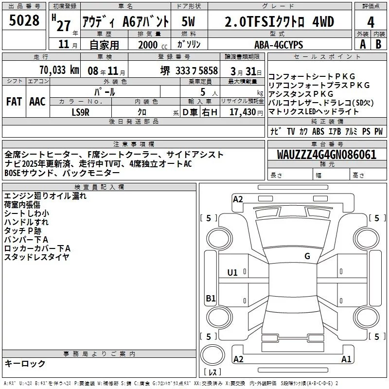 Audi A6 с аукциона Японии TAA Hyogo лот № 5028