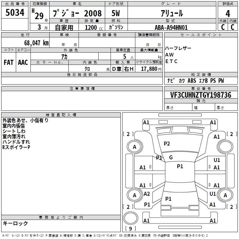 Peugeot 2008 с аукциона Японии TAA Hyogo лот № 5034