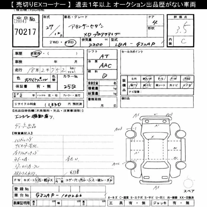 Mazda ATENZA SEDAN с аукциона Японии JU Gifu лот № 70217