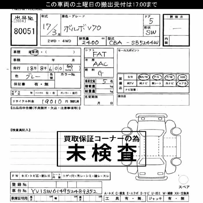 Volvo V70 с аукциона Японии JU Gifu лот № 80051