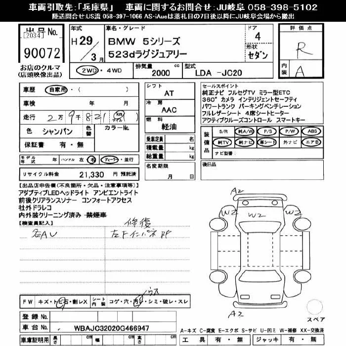 BMW 5-Series с аукциона Японии JU Gifu лот № 90072