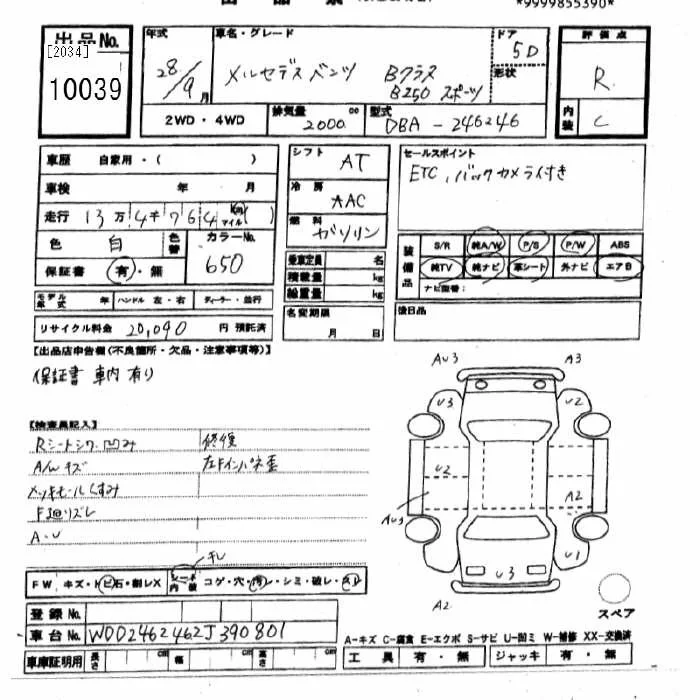 Mercedes-Benz B CLASS с аукциона Японии JU Gifu лот № 10039