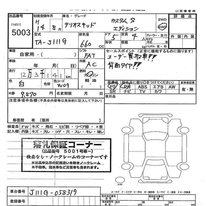 Daihatsu TERIOS KID с аукциона Японии JU Yamanashi лот № 5003
