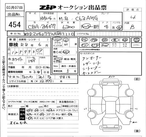 Mercedes-Benz AMG с аукциона Японии ZIP Tokyo лот № 454
