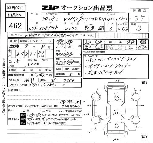 Volkswagen TIGUAN с аукциона Японии ZIP Tokyo лот № 462