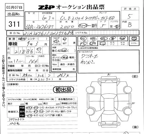 Mercedes-Benz GLB с аукциона Японии ZIP Tokyo лот № 311