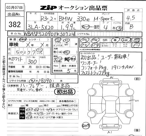 BMW 3-Series с аукциона Японии ZIP Tokyo лот № 382