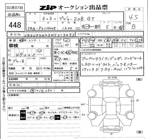 Peugeot 208 с аукциона Японии ZIP Tokyo лот № 448