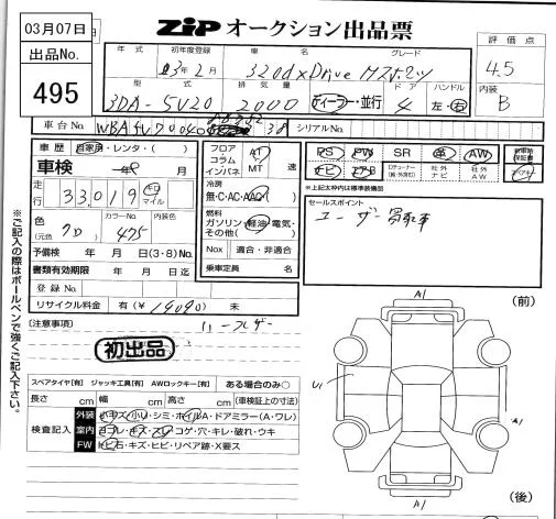 BMW 3-Series с аукциона Японии ZIP Tokyo лот № 495