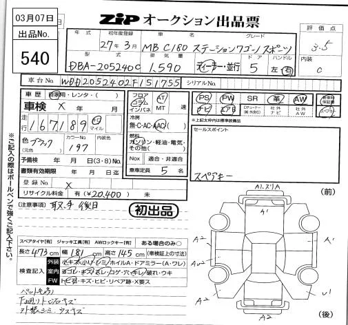 Mercedes-Benz C CLASS WAGON с аукциона Японии ZIP Tokyo лот № 540
