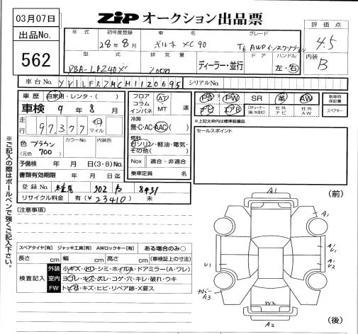 Volvo XC90 с аукциона Японии ZIP Tokyo лот № 562