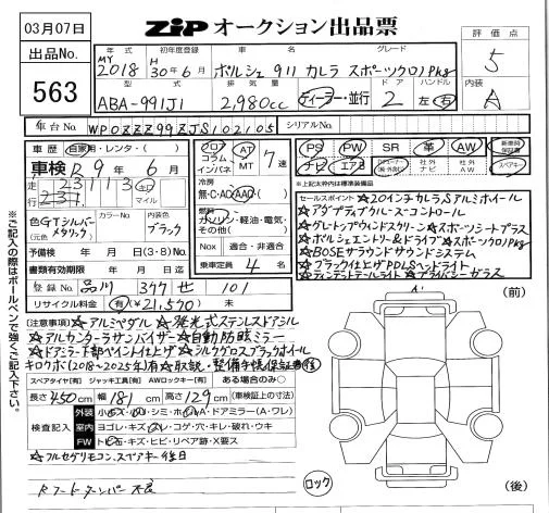 Porsche 911 с аукциона Японии ZIP Tokyo лот № 563