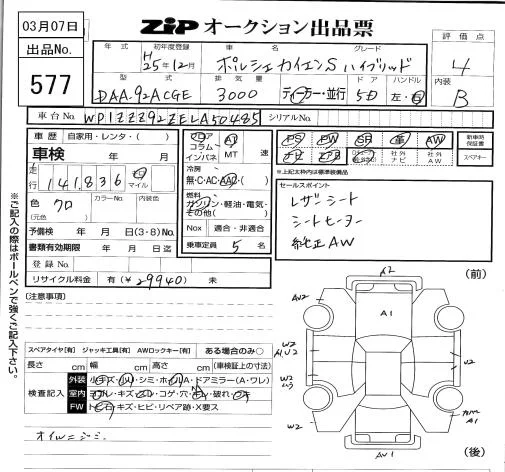 Porsche CAYENNE с аукциона Японии ZIP Tokyo лот № 577