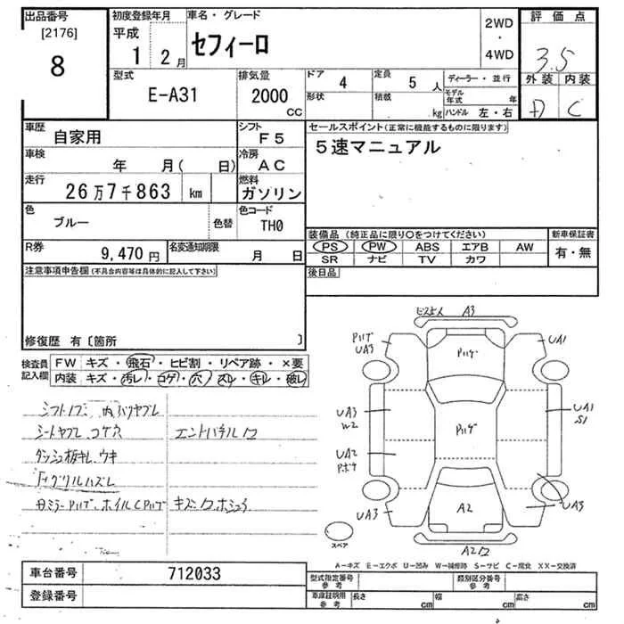 Nissan CEFIRO с аукциона Японии JU Tokyo лот № 8