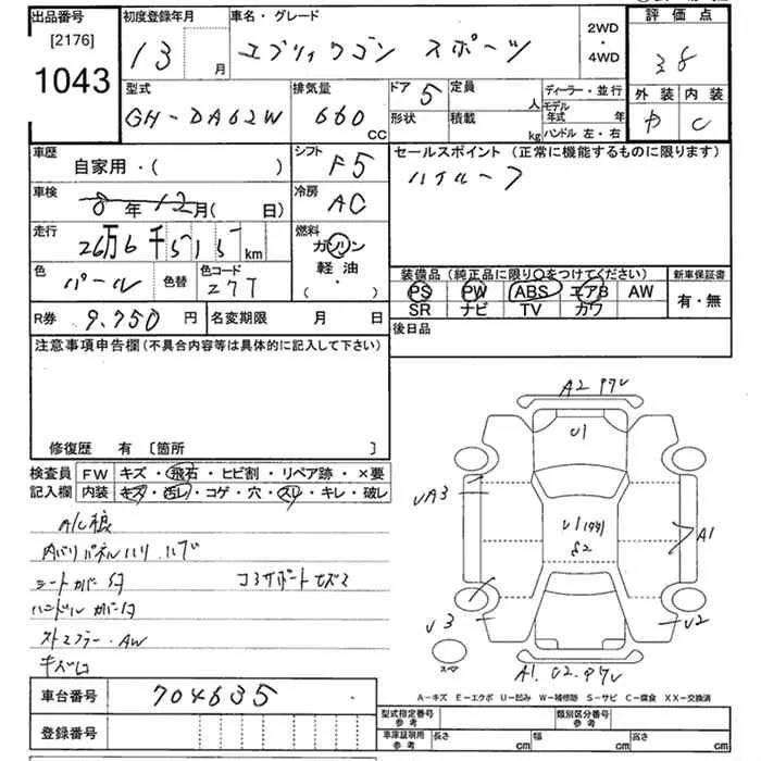 Suzuki EVERY WAGON с аукциона Японии JU Tokyo лот № 1043