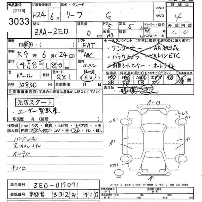 Nissan LEAF с аукциона Японии JU Tokyo лот № 3033