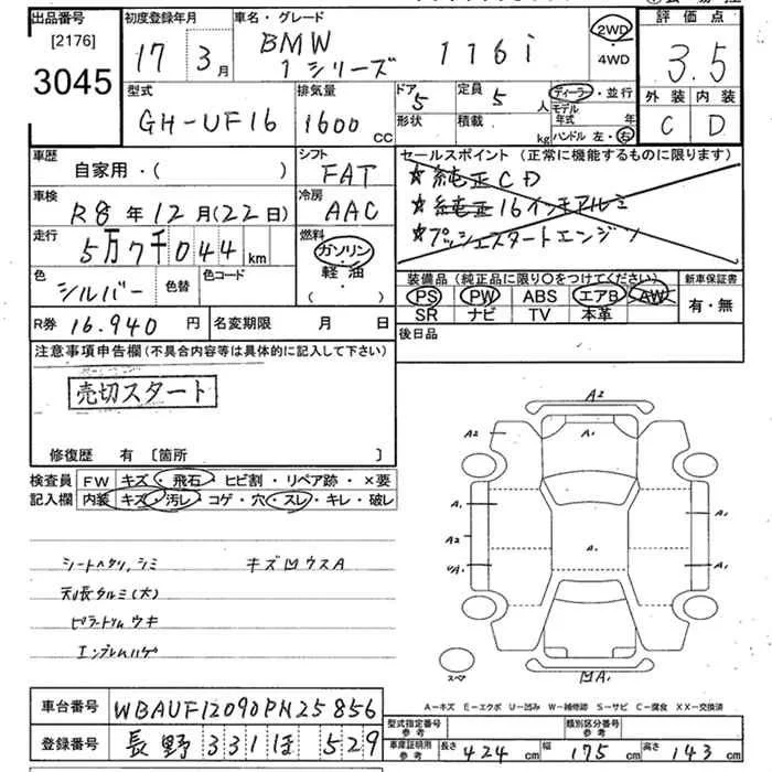 BMW 1-Series с аукциона Японии JU Tokyo лот № 3045