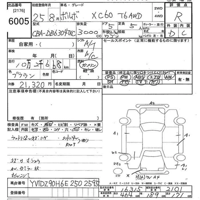 Volvo XC60 с аукциона Японии JU Tokyo лот № 6005