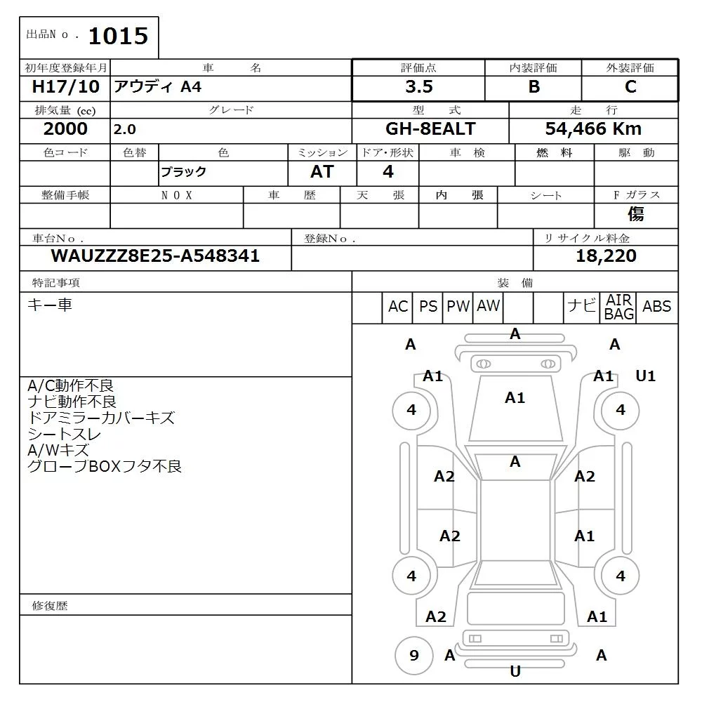 Audi A4 с аукциона Японии NISSAN Osaka лот № 1015
