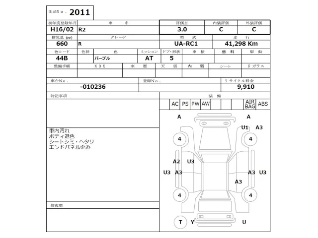 Subaru R2 с аукциона Японии NISSAN Osaka лот № 2011