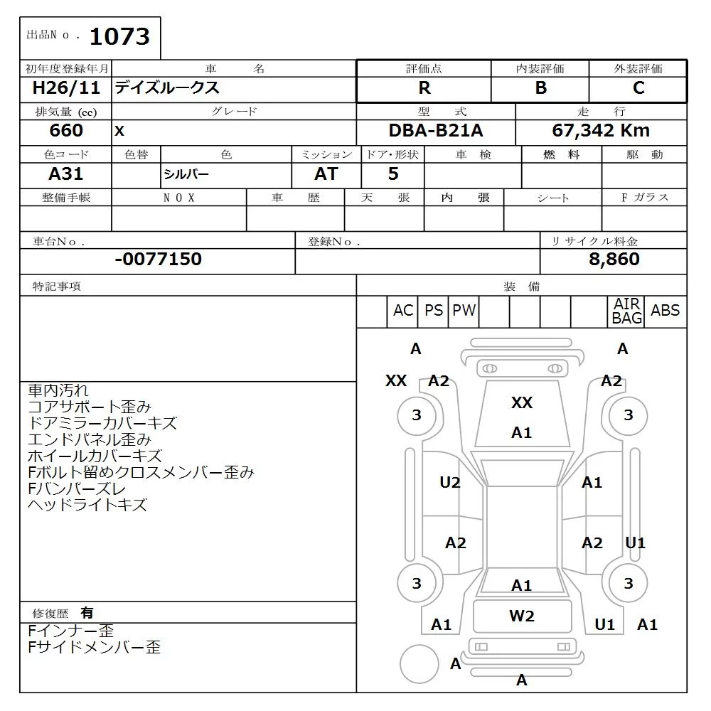 Nissan DAYZ ROOX с аукциона Японии NISSAN Osaka лот № 1073