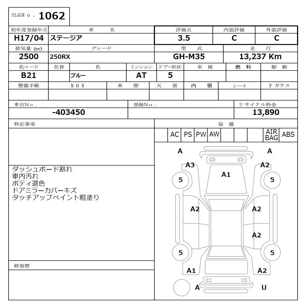 Nissan STAGEA с аукциона Японии NISSAN Osaka лот № 1062