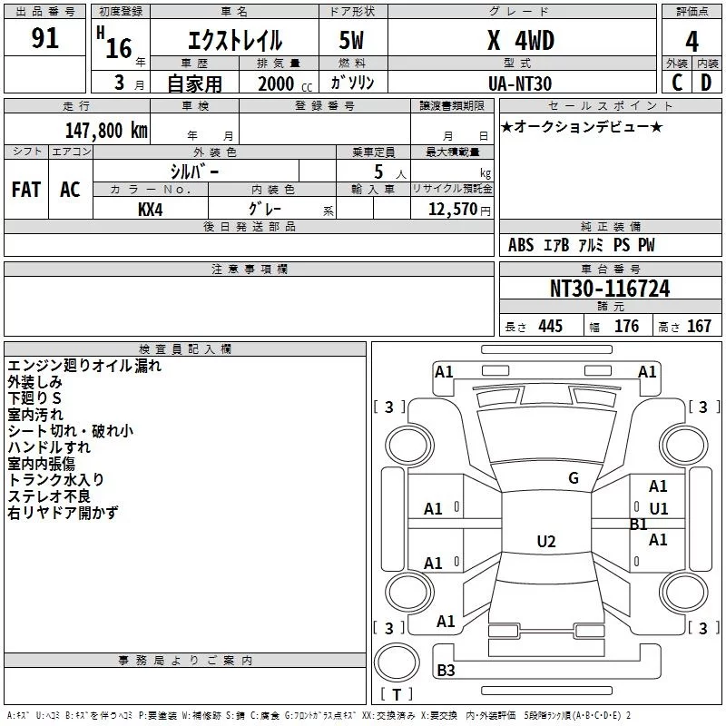 Nissan X-TRAIL с аукциона Японии TAA Kyushu лот № 91
