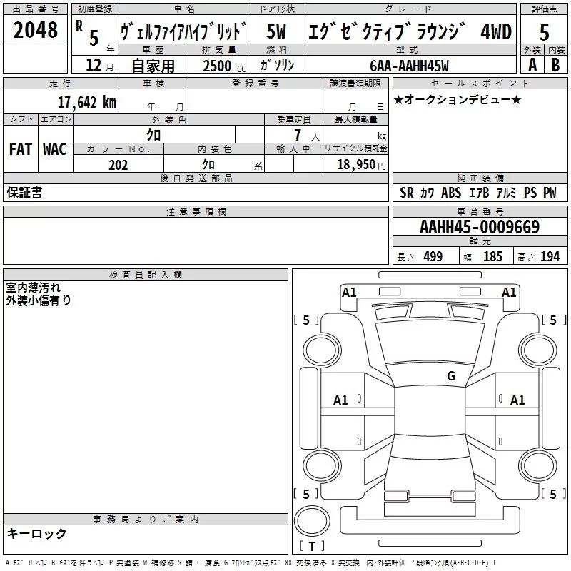 Toyota VELLFIRE с аукциона Японии TAA Kyushu лот № 2048