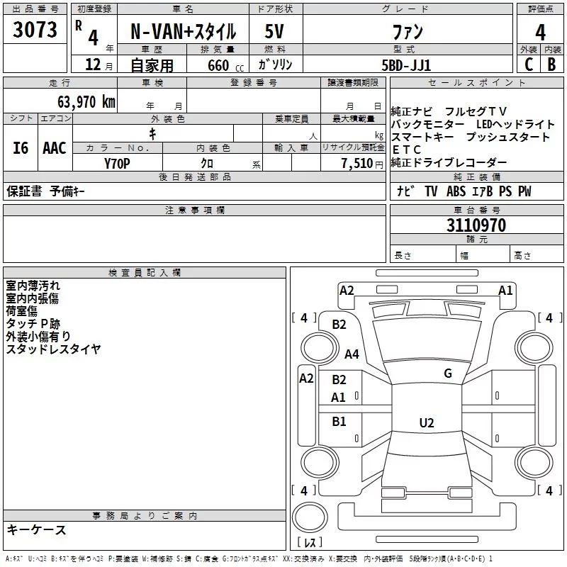Honda N VAN с аукциона Японии TAA Kyushu лот № 3073