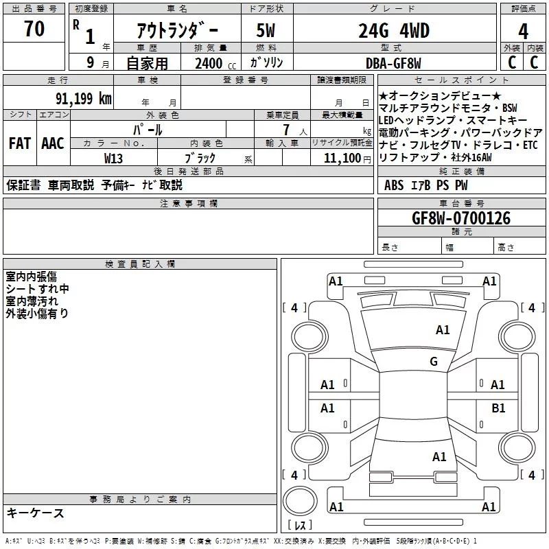 Mitsubishi OUTLANDER с аукциона Японии TAA Kyushu лот № 70